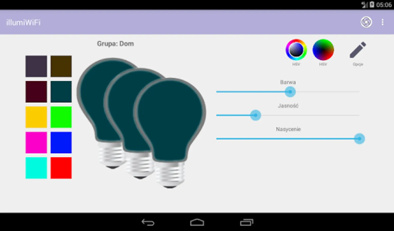 - Możliwość grupowania kontrolerów - kontrola koloru wielu punktów oświetlenia jednocześnie