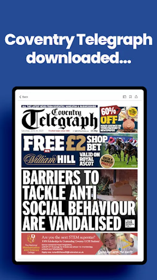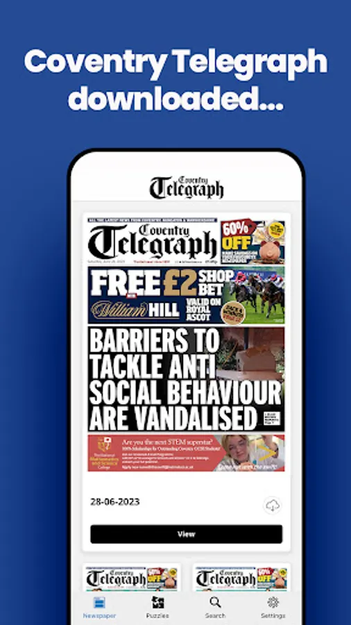 The Telegraph is the heart of life in Coventry and Warwickshire, bringing you all the local news you need, with Sky Blues leading our sports coverage and loads of what’s on info from across the region. When you subscribe to the e-edition, you can enjoy waking up to your favourite newspaper, complete with daily puzzles, all in the palm of your hand.