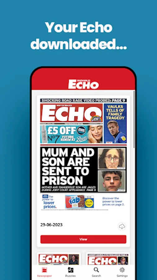 The South Wales Echo brings all the latest news, sport and entertainment from Cardiff, the South Wales Valleys and beyond, and when you subscribe to the eEdition, you can enjoy waking up to your favourite newspaper, complete with daily puzzles, all in the palm of your hand.
