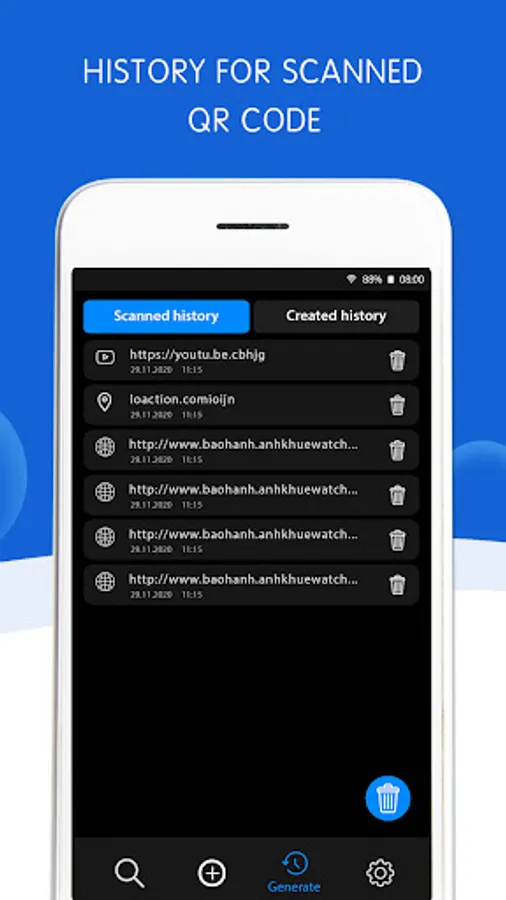 This QR code scanning app scans all barcodes and it’s very easy to use. Barcode reader app quickly scans codes and save all coded information on your android mobile. Install this app and turn your mobile into a portable QR scanner & QR Barcode scanner.