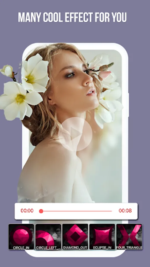 Beautiful effects: Photo video maker has a lot of wonderful effects and it's free. Just need one operation to create great music videos or edit your photos into compelling videos.