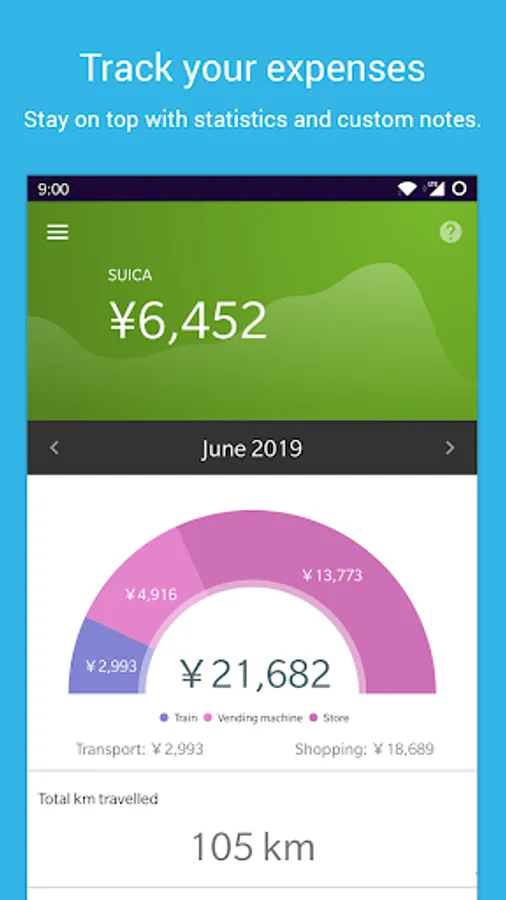 * Suikakeibo lets you see your recent trips and keep track of all your IC card expenses with a simple touch.