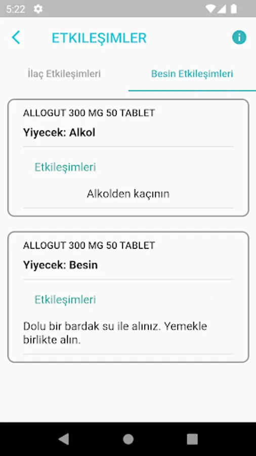 * You can follow the food interactions of your drug and see the interaction with other drugs you use.