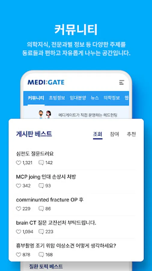 You can share stories between doctors such as specialty department bulletin boards, Muchima, and Yeouido.