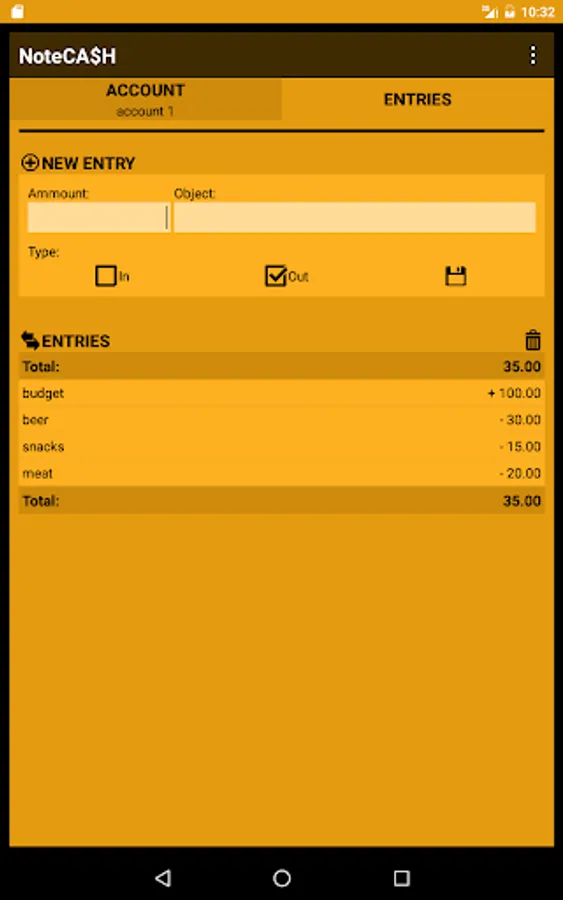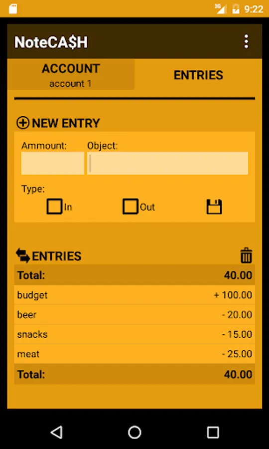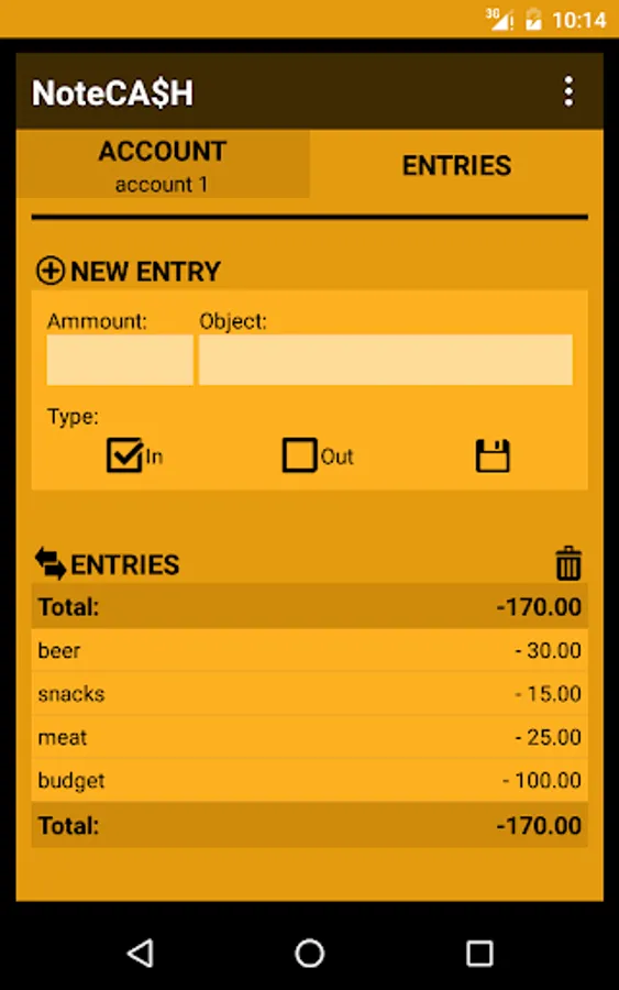 This is not an application for advanced or complex accounting but quite the opposite: NoteCA$H is essentially the minimum necessary to save the in/out flow of money in accounts.