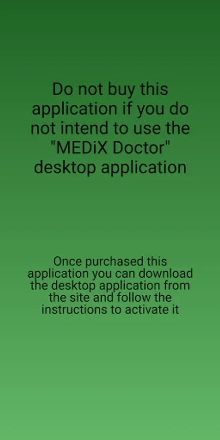 Do not buy this application if you do not intend to use the "MEDiX Doctor" desktop application.