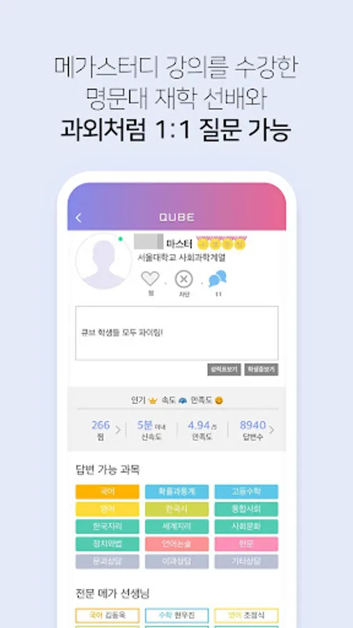 SKY, a former Megastudy student, and a master at a prestigious university can solve problems in all subjects such as math, science, and English!