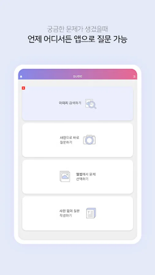 Anytime, anywhere, take a picture with the app to search & ask 1:1 questions