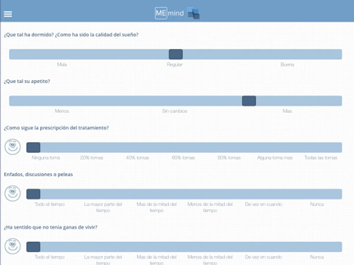 MeMind aims to longitudinally monitor patients in real conditions with real-time data of patients and family members (caregivers).