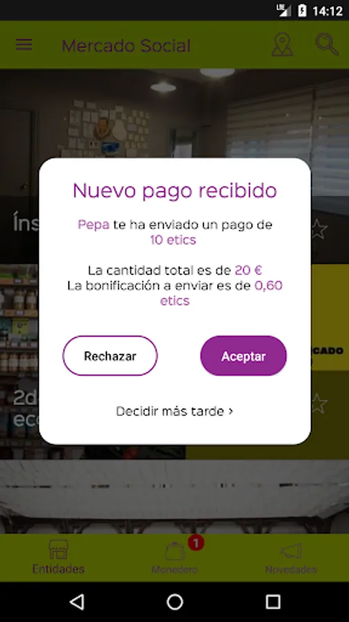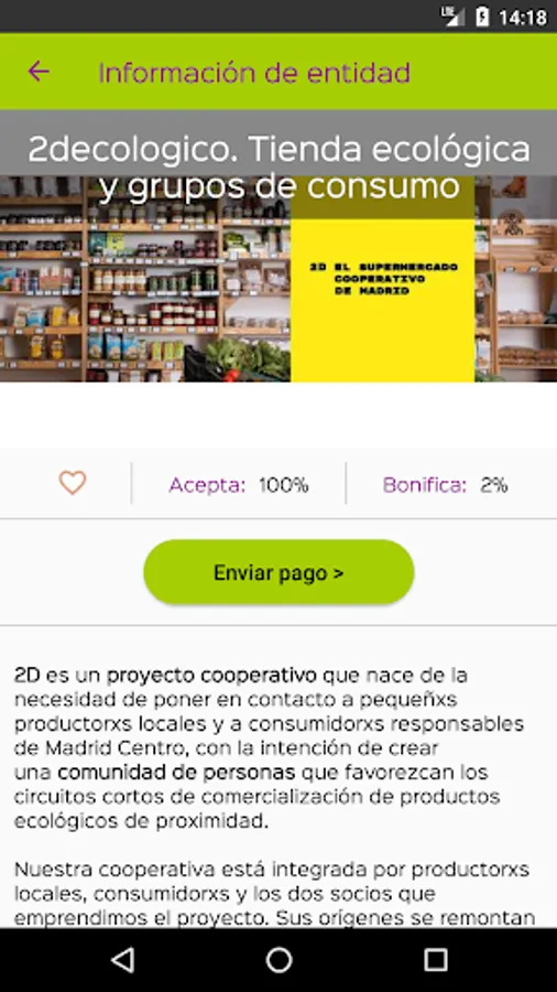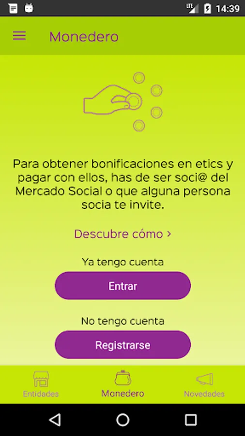 When you make purchases in the Social Market, if you have downloaded this app, you can receive ethical bonuses - the etics - and pay with them in your next purchase. If we act collectively, all the people and entities that belong to the network, we will benefit and contribute to a more diverse and resilient Social and Solidarity Economy.