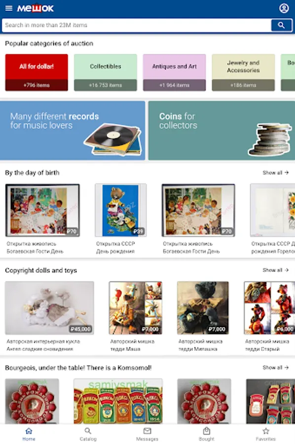 Meshok has almost any item ever created on Earth. From modern gadgets to ancient coins.