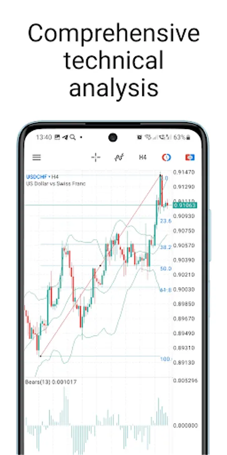 * 24 analytical objects: lines, channels, geometric shapes, as well as Gann, Fibonacci and Elliott tools