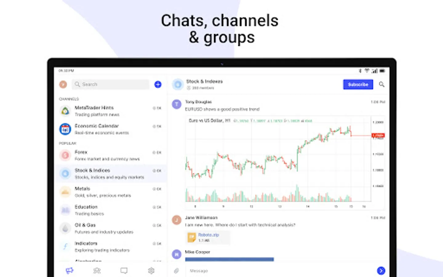 While a vast features list is provided, we have made efforts to keep the interface clean and simple. Install MQL5 Channels, one of the easiest to use messaging apps.