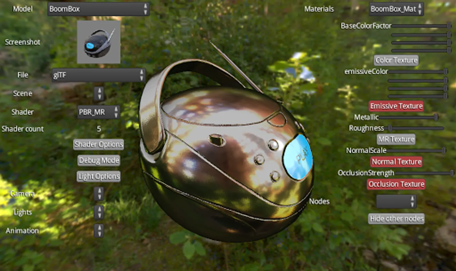 Primary goal is to test PBR shader on various Android devices.