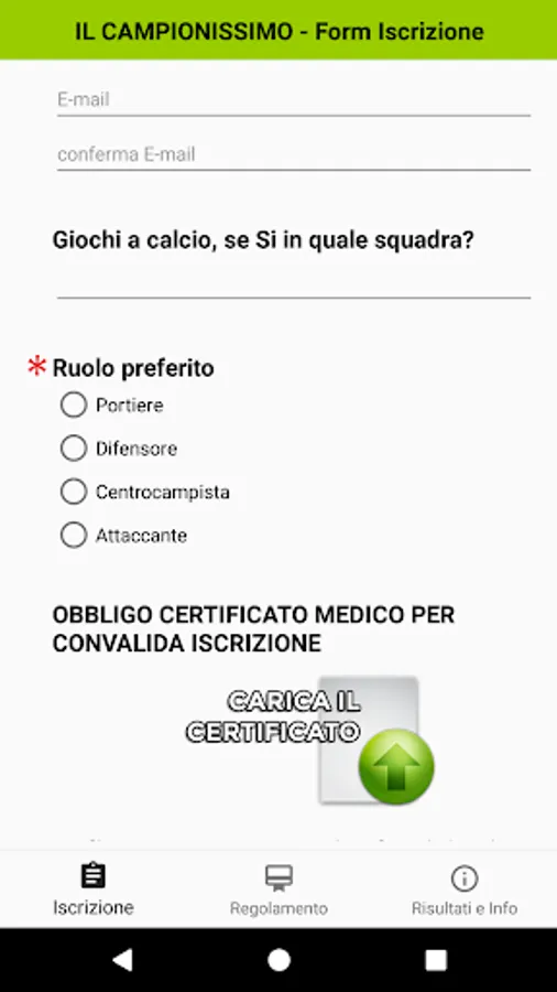 With this simple app you can easily sign up, wherever you are, your / a child / a champion of the game.