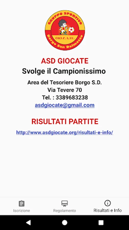 The official app of the sports group of Borgo San Dalmazzo who organizes in the field of international football Treasurer