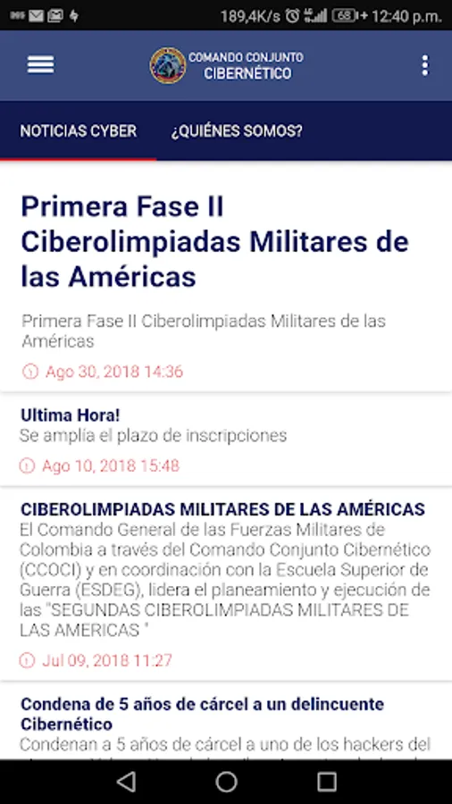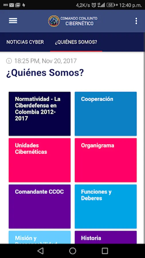 Mobile application of the Cybernetic Joint Command. It allows citizens to know everything about the entity and get quick access to their main news and information related to cybersecurity and cyberdefense