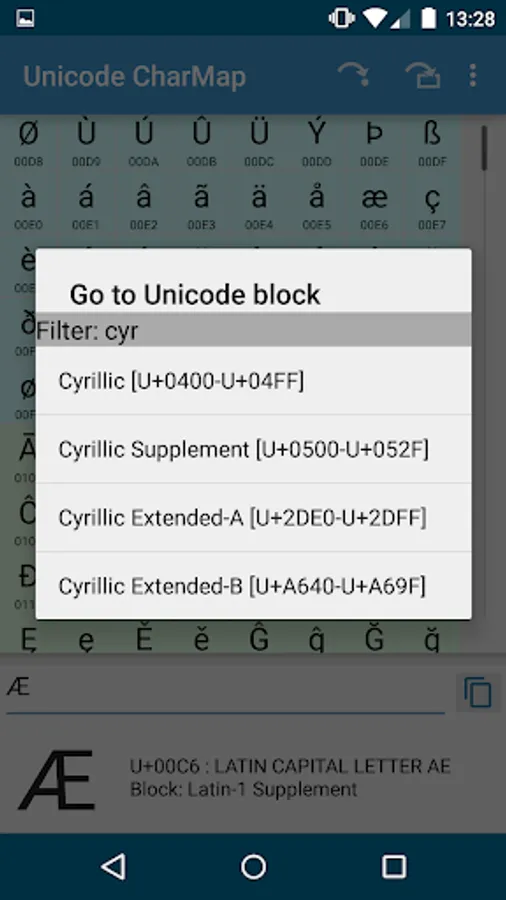 This application can be used as an Unicode explorer, or an advanced character picker.