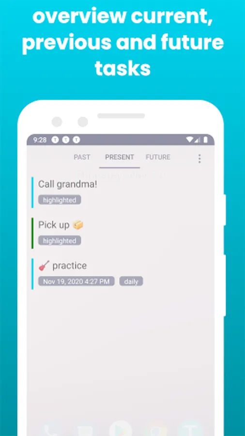 With a quick settings tile for fast access, and tasks restored automatically when the device is restarted, microtasks is the ultimate task management app for busy people on the go.