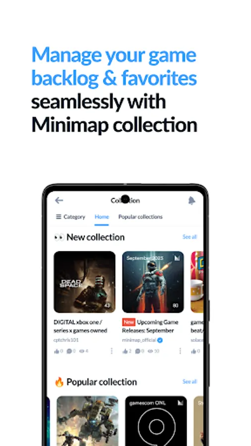 ✅ Manage your lists: Manage your game backlog & favorites seamlessly with Minimap collection