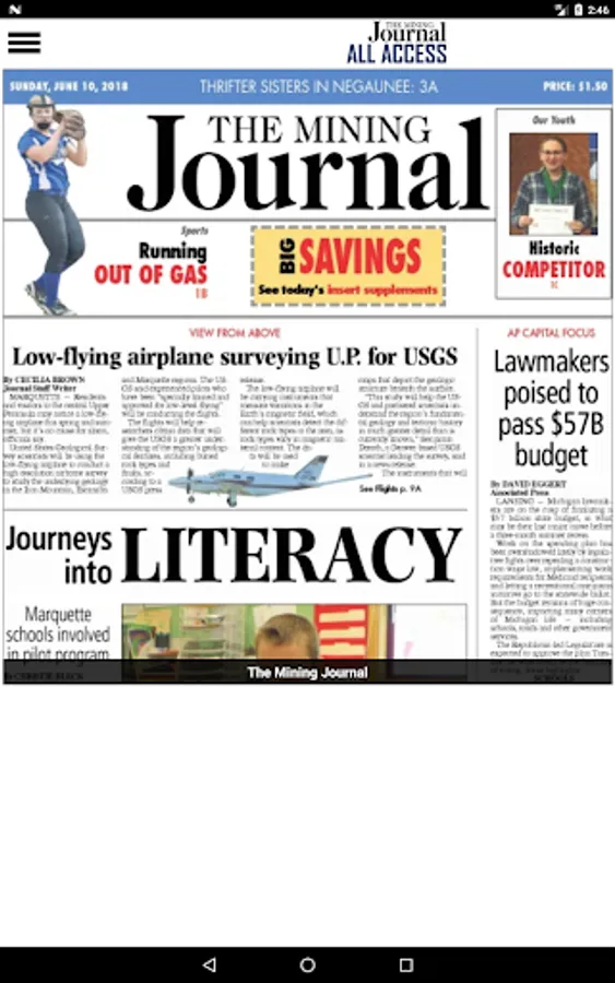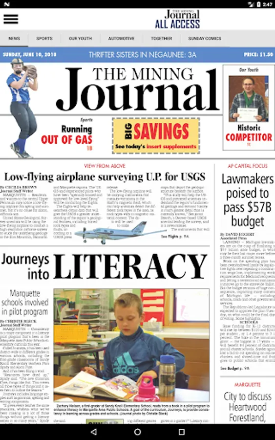 Stay on top of news from Marquette and surrounding areas by receiving the full print version of the The Mining Journal on your Android device. Every page of every edition is delivered to your device. The Mining Journal is the best source for local and national news, sports, weather and features in the Marquette and North-Central Upper Peninsula area of Michigan. Download the app to view the printed pages of the newspaper or read headlines and stories along with related photos in a built-in story viewer.