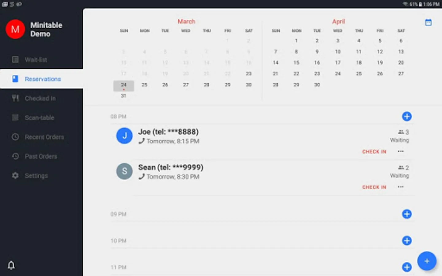 Minitable Merchant is designed for restaurants to manage online waitlist, reservation, and table management