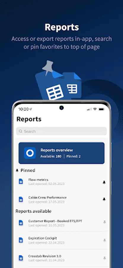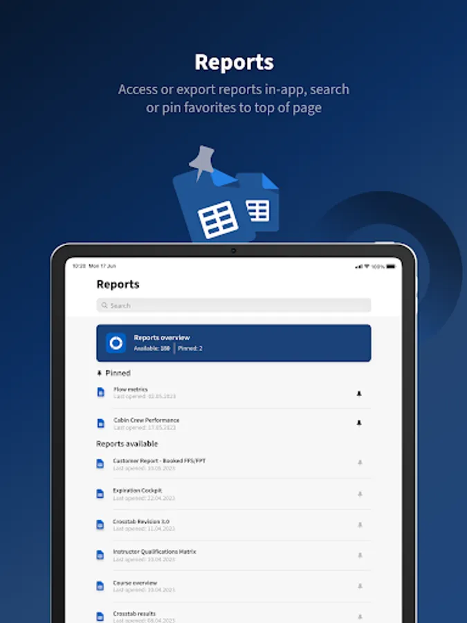 You can access and export your MINT reports in various formats. Additionally, you can search through all available reports or pin your most-used to the top of the page.