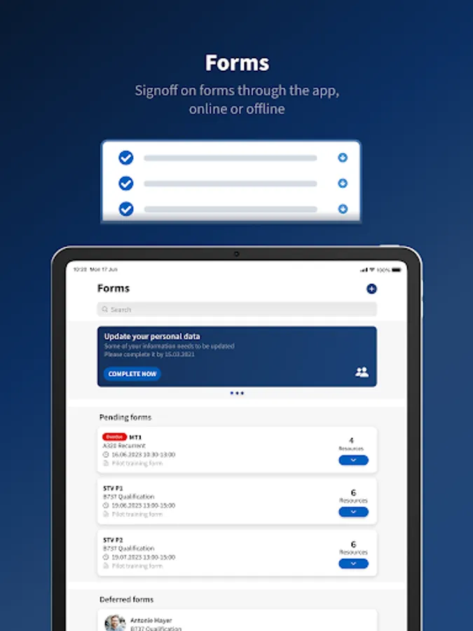There are all kinds of forms you can complete through the app, online or offline, like pending, ad-hoc, deferred, or personal information. We’ve also implemented one-tap grading where you can quickly assign qualifications without completing a form.