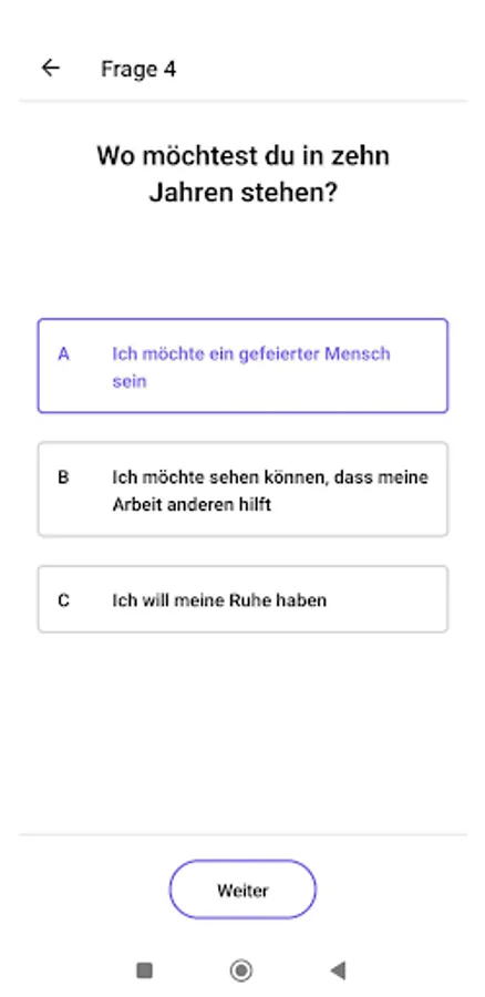 By logging into the app, the participant applies for fictitious citizenship, is assigned a number and has to answer various questions and take various tests. Reference will be made to the answers later. The aim should initially be to become as good a citizen as possible, for example by continuing your education, getting information about the app, doing sports and thus collecting points.