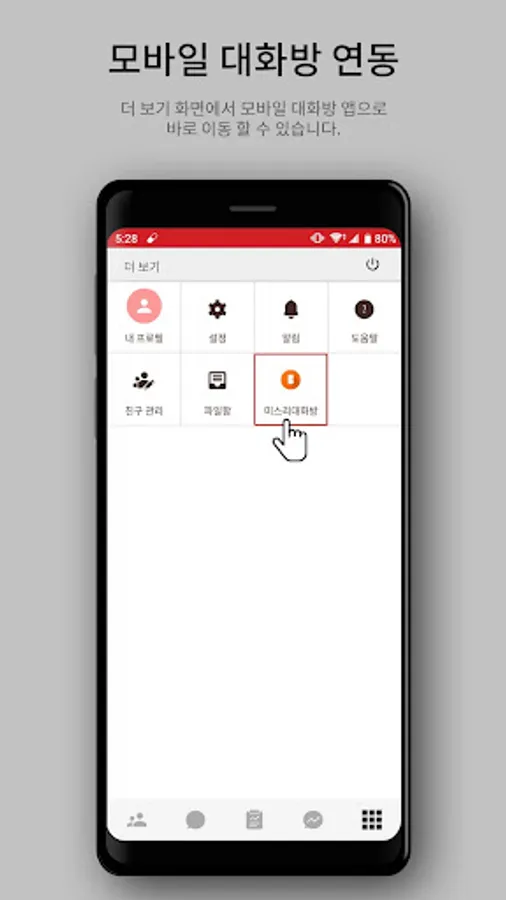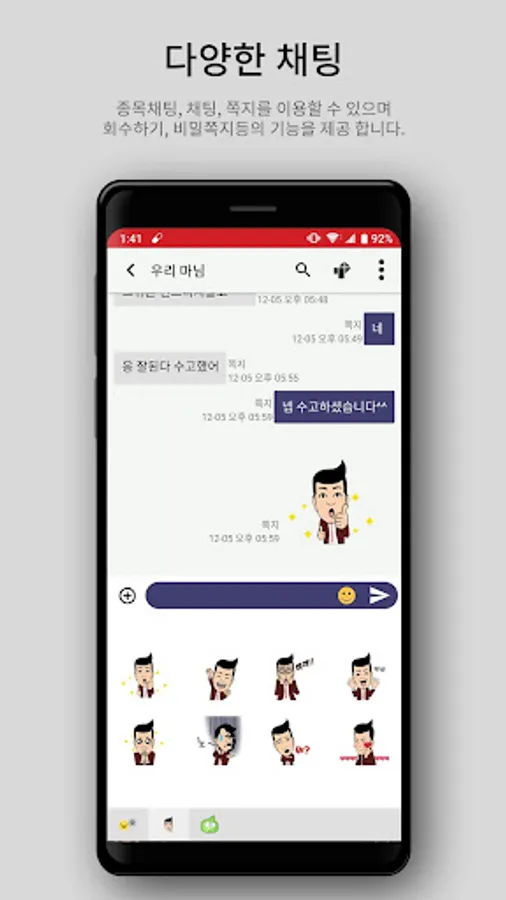 - Provides various types of conversations such as direct message / 1:1 conversation / secret message / Missri chat room