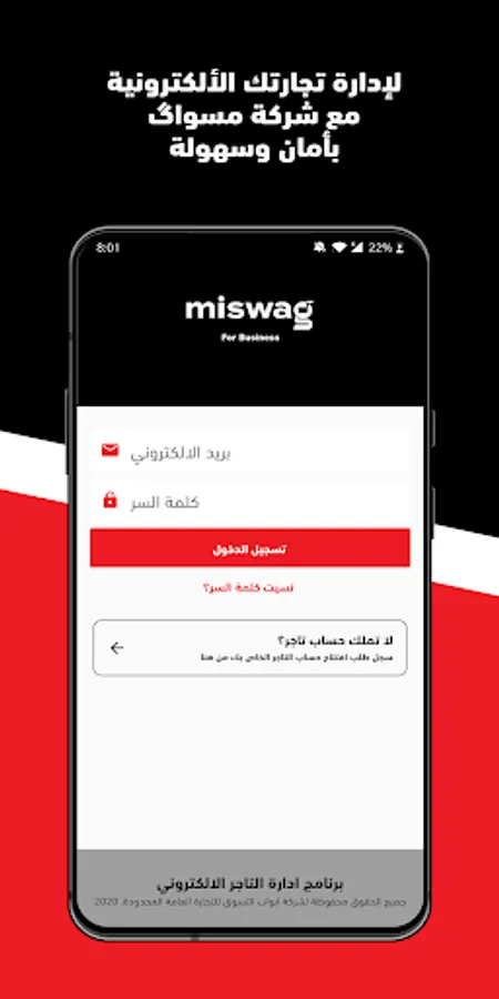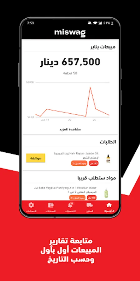 Merchants and sellers on the Miswag platform can now manage and follow their trade easily, quickly and anywhere, through the new electronic merchant application from Misfat. This application provides many advantages, the most important of which are: