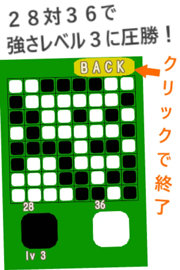 ※Ver 1.0.0にて盤のマス数、後攻(白)、CPU強さレベル3(黒)、など変更できる機能追加しました。