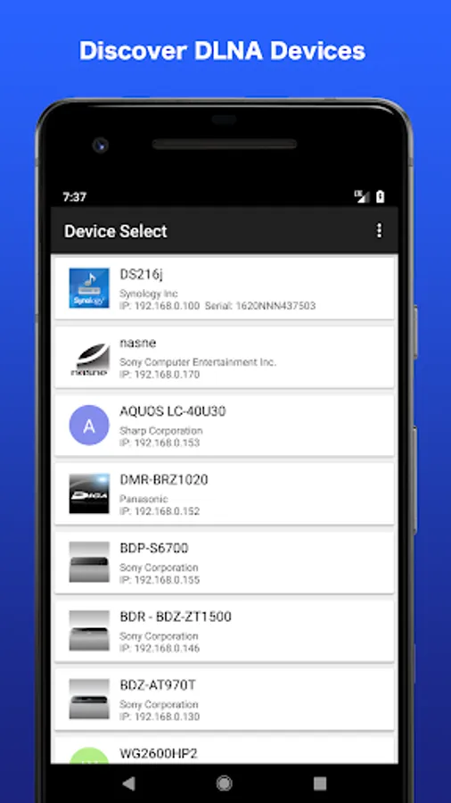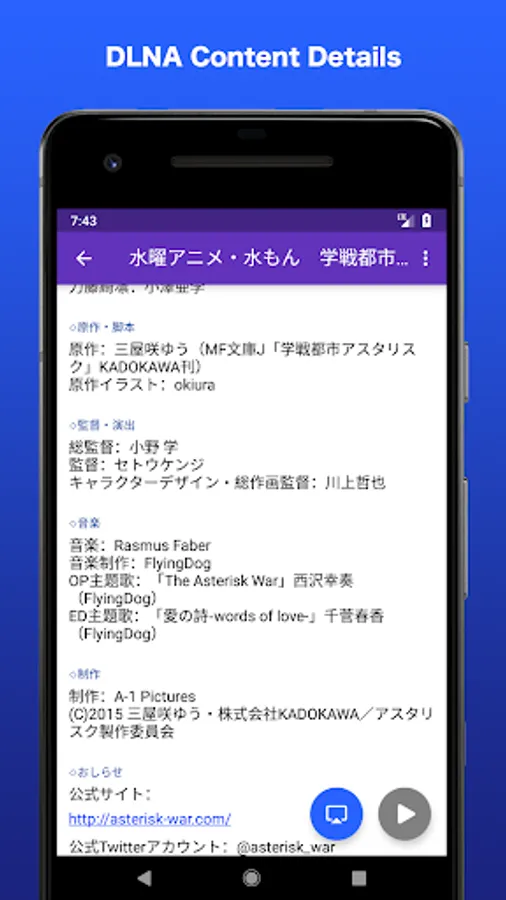 This app's feature is to information display about DLNA server (DMS) and its contents.