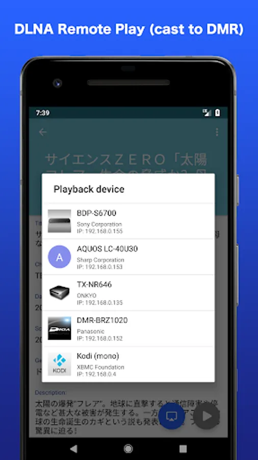 Although it carries the minimum playback function of movies, still images and music, it features a metadata display function of server and contents rather than usability as a player.