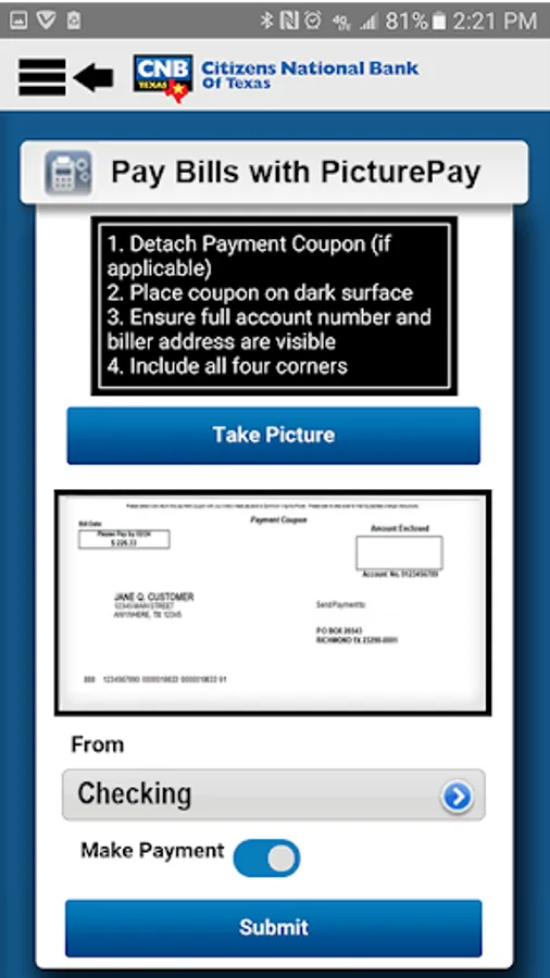 • Picture Pay Bill Pay – pay all your bills just by snapping a picture