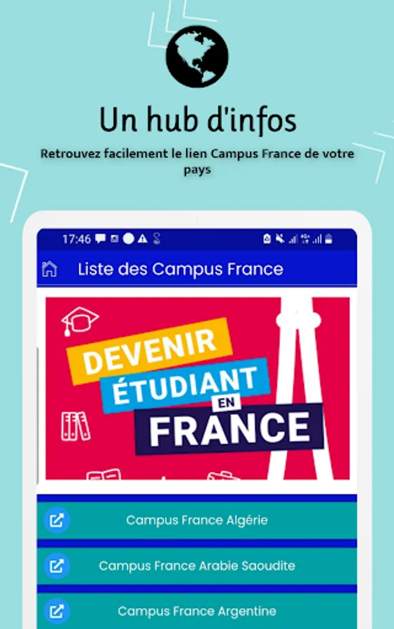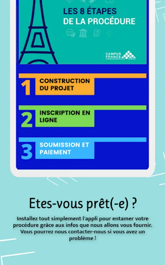 If you have decided to go one day to continue your studies in France, then this app is for you. If, on the other hand, you have no plans to go study in France, the application is also for you because you can use it to know all the Campus France procedure and then explain it to friends or relatives. whose dream is to study in France.