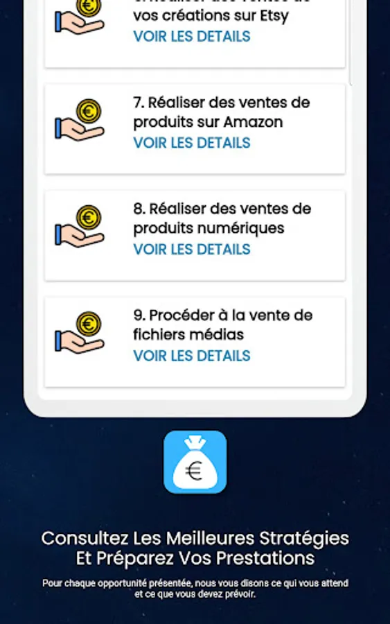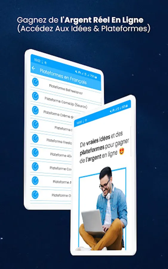 This is why this application makes it easy for you to access these platforms. Indeed, the application lists several freelancing platforms on which you can effectively earn money.