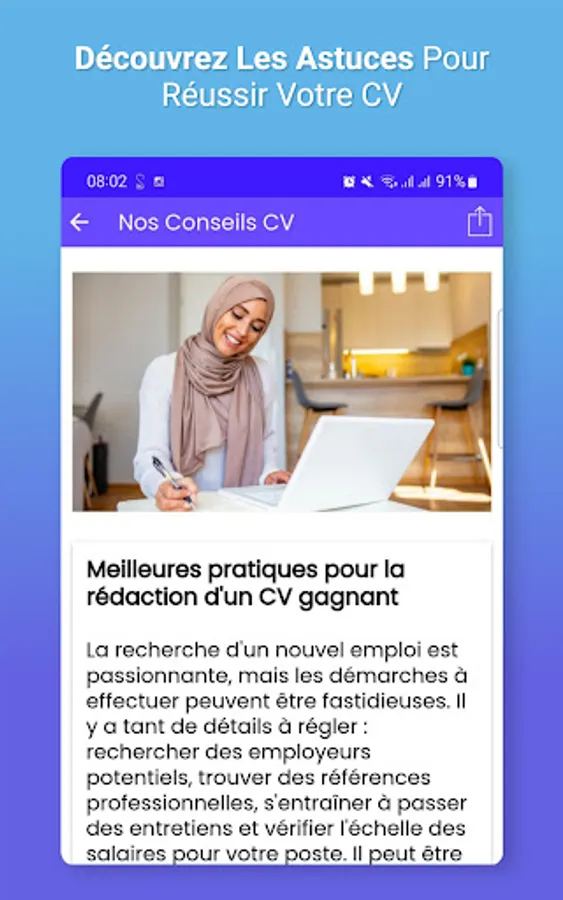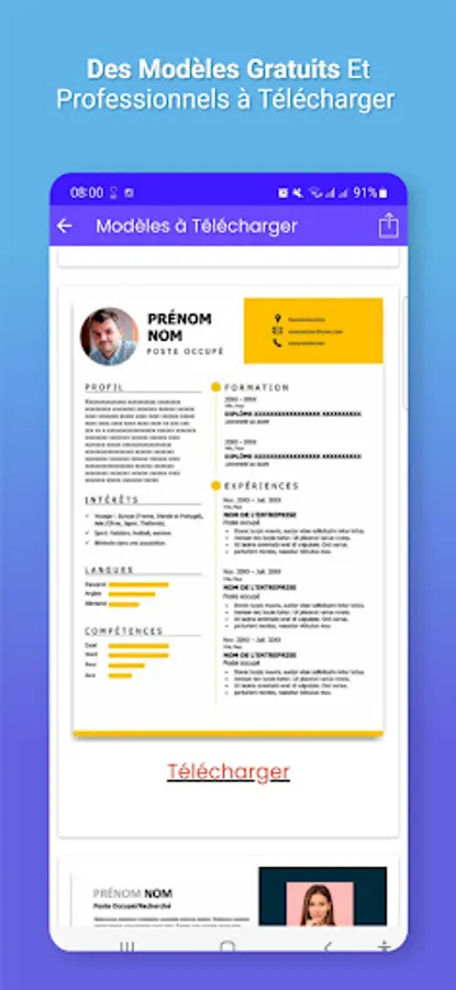- Several templates of magnificent CVs downloadable in Word version that you can modify offline from your smartphone;