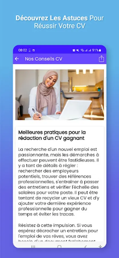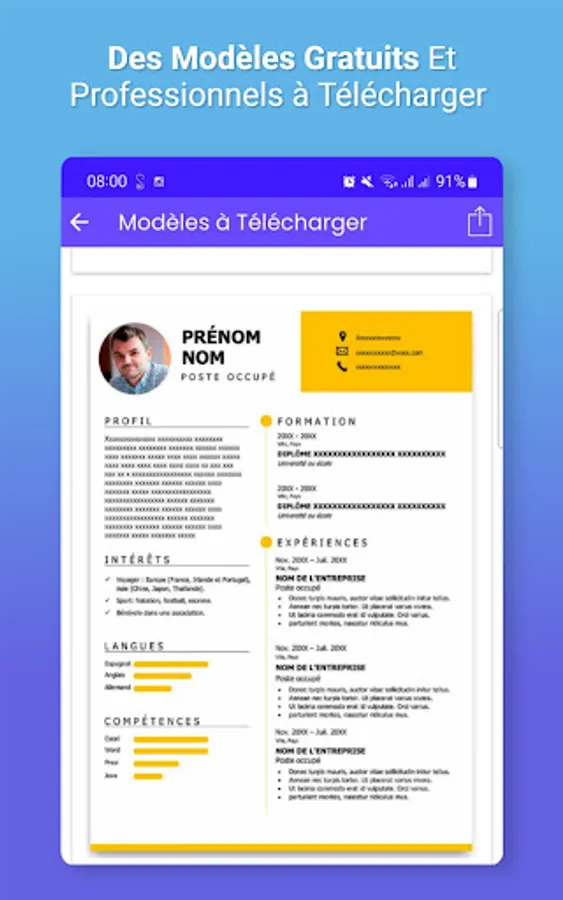 This application will help you create a CV in French and in PDF adapted to each situation. But the app isn't just a fast, efficient and professional resume builder. It is also a way to understand the CV and know the tricks allowing you to successfully design it, even if you do not yet have any professional experience.