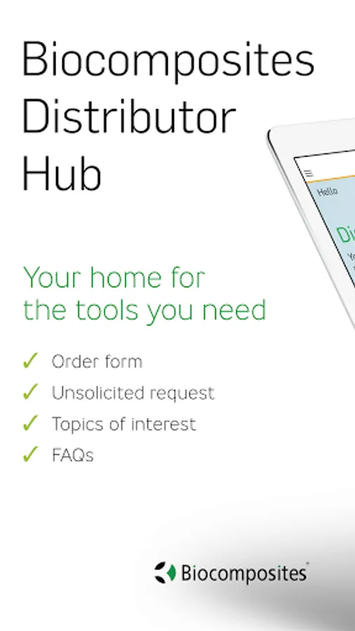 An app for Biocomposites’ Distributor Representatives to access the knowledge and tools they need to succeed, including sales tools, digital order form and news updates.