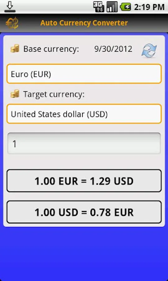 Automatically convert currencies! Just start the app, and see immediately the conversion between your most probable currencies. A totally simple and easy to understand screen handling.