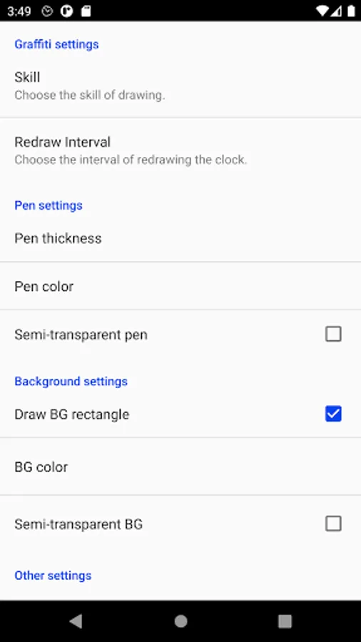 <> You can change the pen color, pen thickness, BG(background) color, and semi-transparent. Surely will match your home screen.