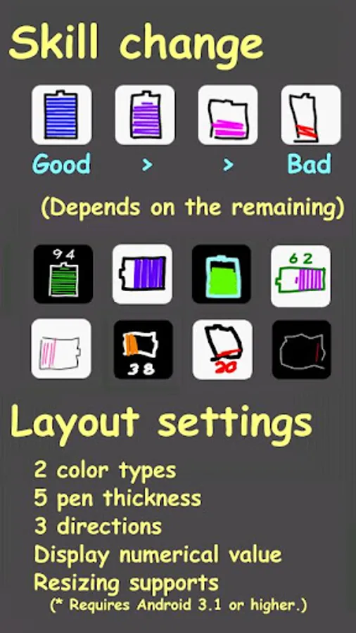 <> This is a battery checker widget, such as graffiti painted by freehand on your home screen.