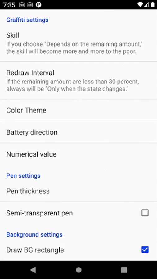 <> You can change the pen thickness, battery direction, battery color and BG(backgroud).