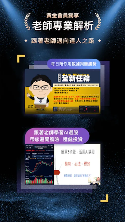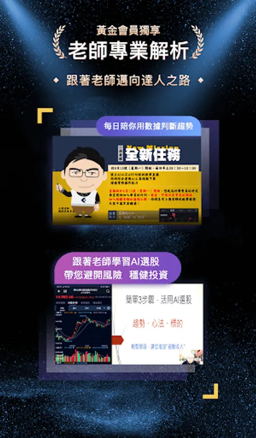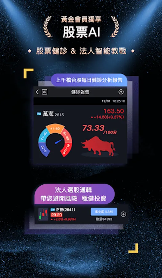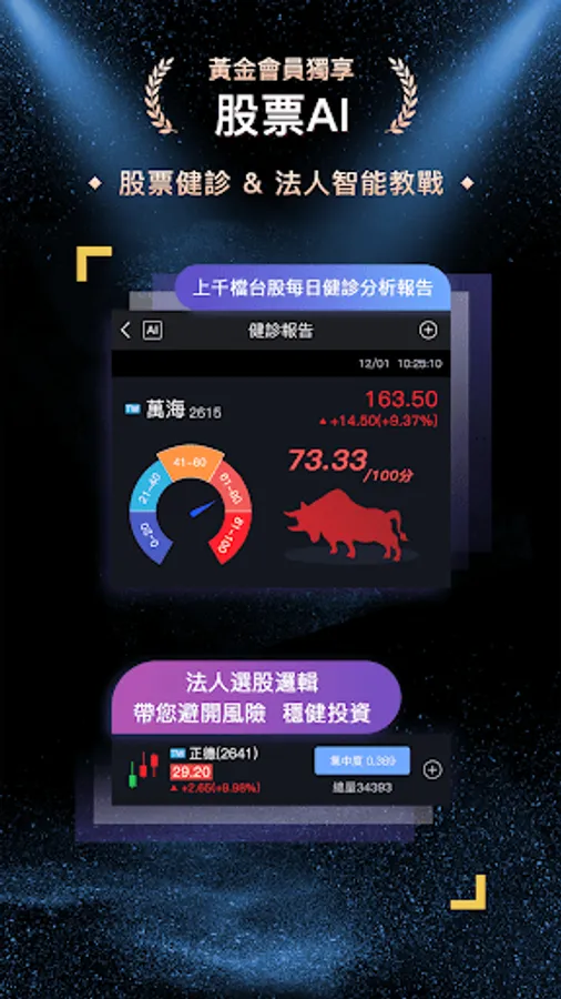 We develop A.I. stock selection & big-data mechanism to help capture high quality stock. Through different criteria and algorithms, we provide analysis reports (including but not limited to fundamental, technical, and quantitative analysis) suitable for individual needs and facilitated investors to make wiser and quicker financial decisions.