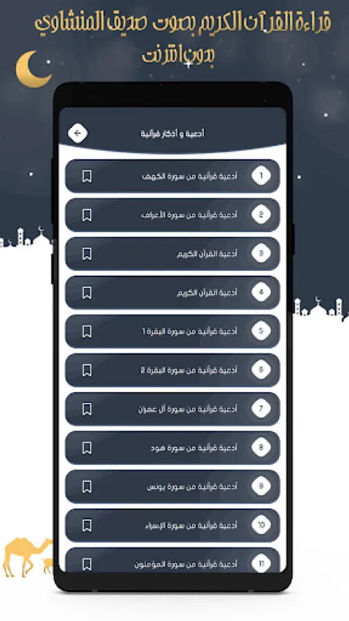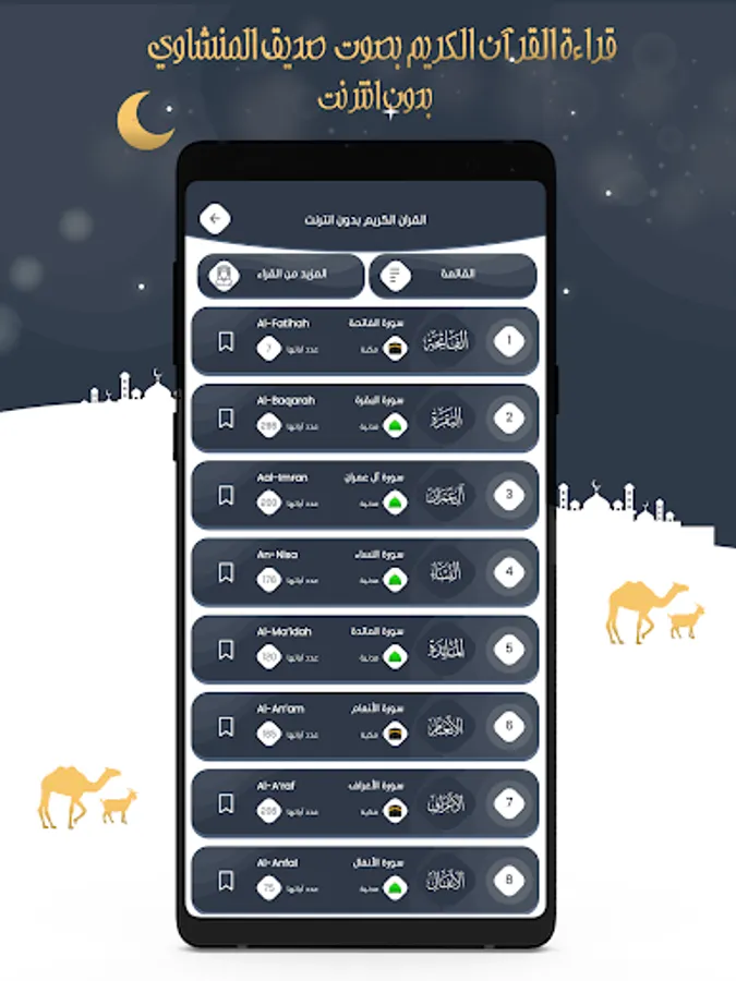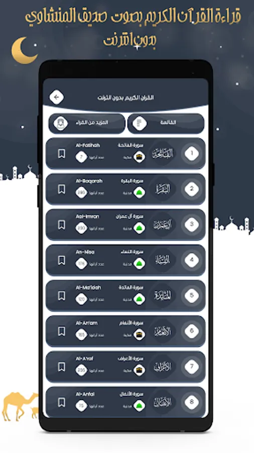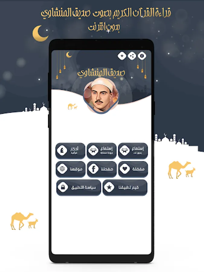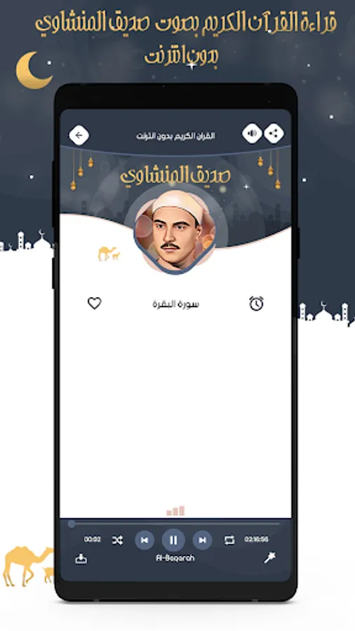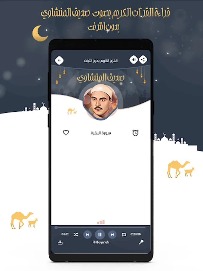 After downloading the application, you can listen to the surahs of the Noble Qur’an with the voice of Sheikh Muhammad Siddiq Al-Minshawi for free, anytime, anywhere, with ease.