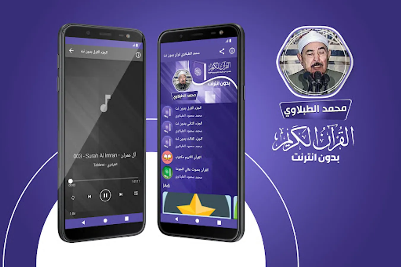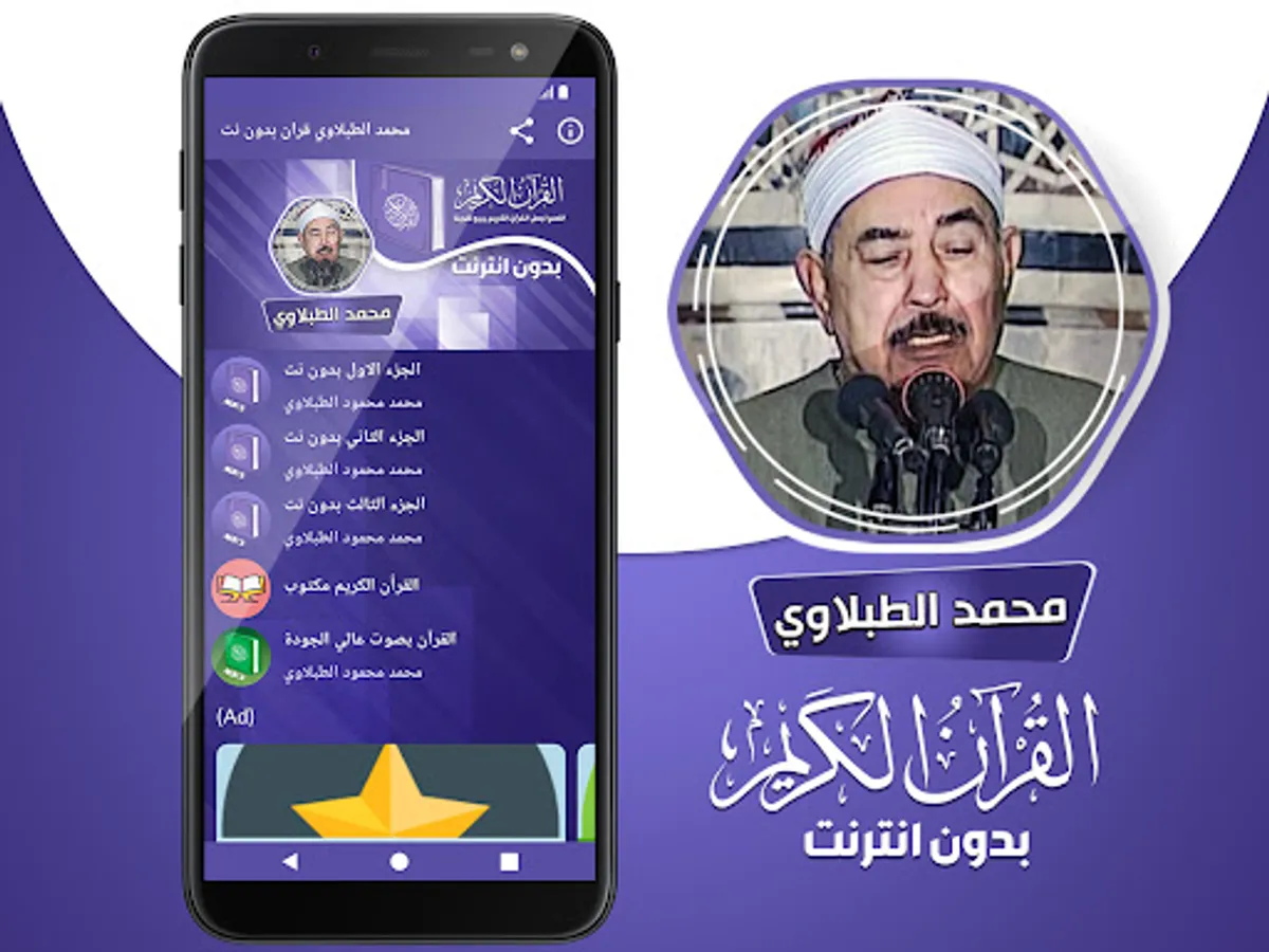 🔹 The Holy Quran application contains the voice of the reciter Muhammad Mahmoud Al-Tablawi, listening to the surahs of the Qur’an without internet and it is characterized by this application for free recitation of the Qur’an.