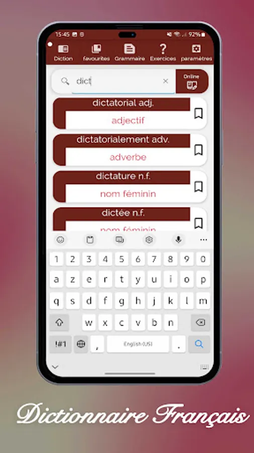 Enrich your vocabulary in French thanks to this pocket application from now on whether you are a student or a professional you will no longer be short of words.