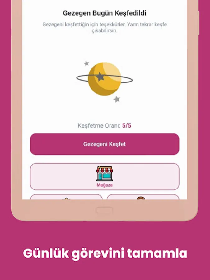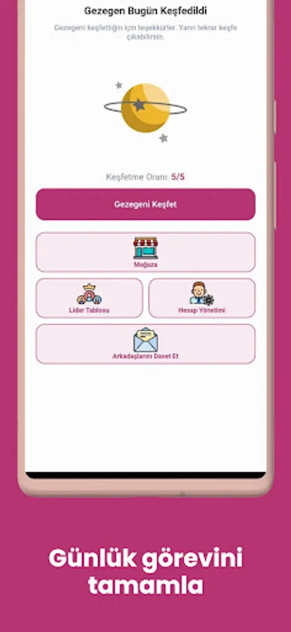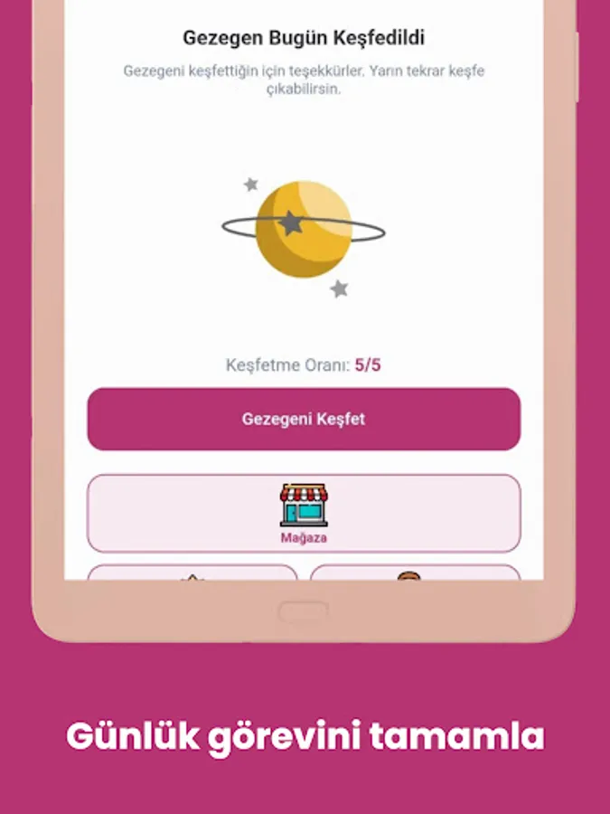 After creating your account, set aside 5 minutes daily to participate in planetary exploration. During this time you will explore different planets and earn points.