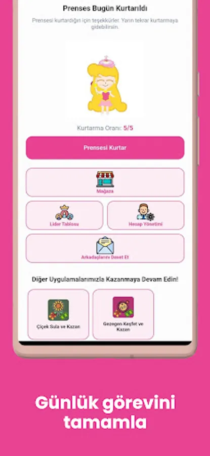 With Princess Save & Earn app, your boring free time will be a thing of the past! In just 5 minutes a day, you can save the princesses and collect points, choose the prize you want and exchange it with the points you have earned.